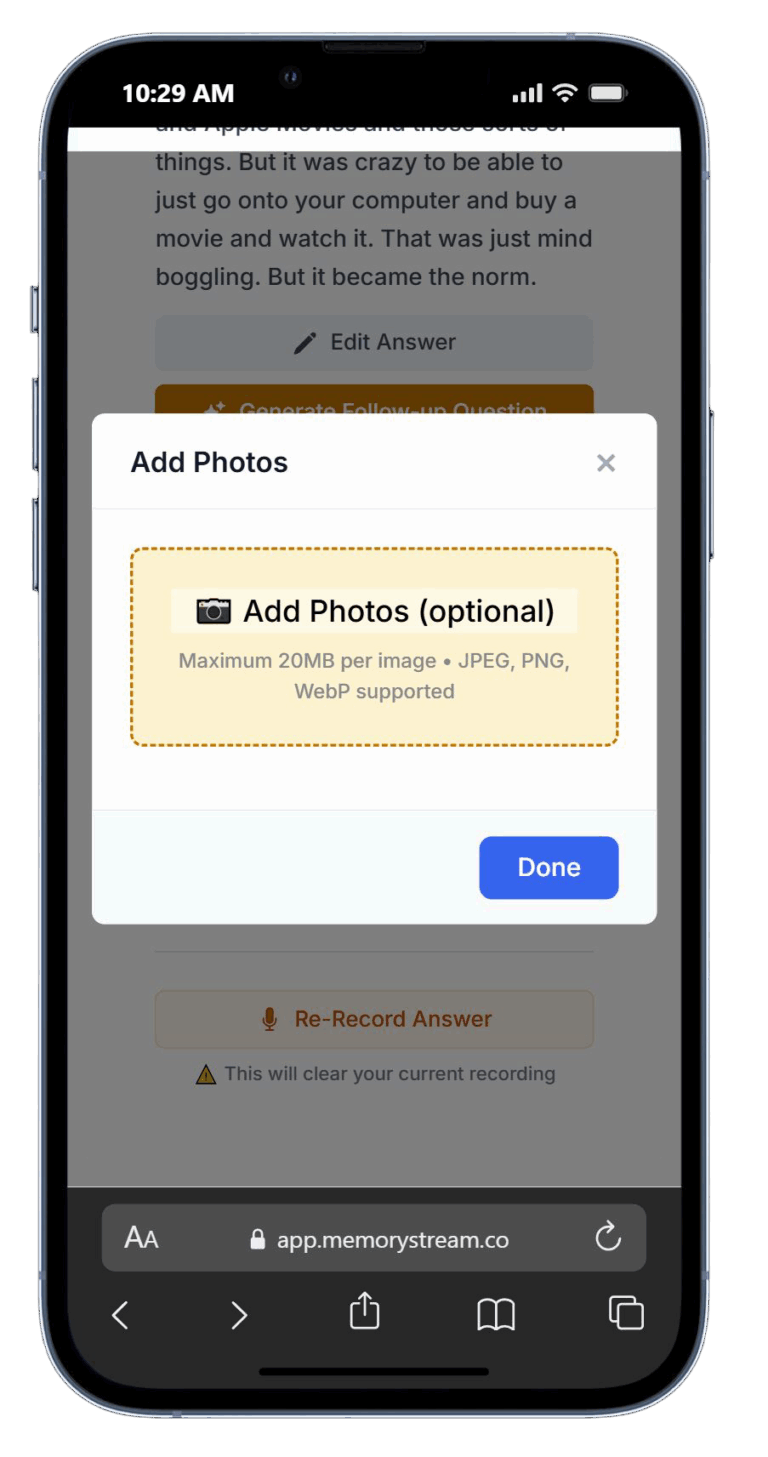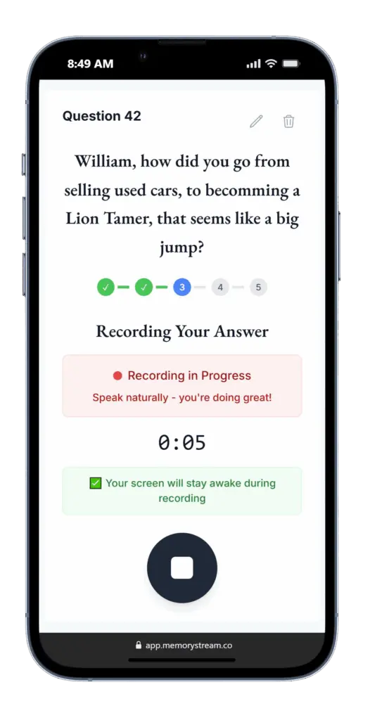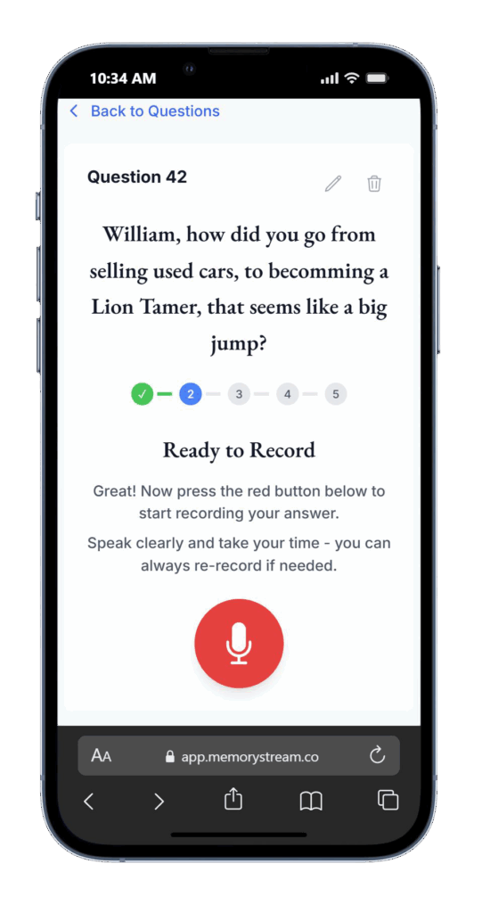 Once the recording is finished, we transcribe your answer and get it ready for your book!