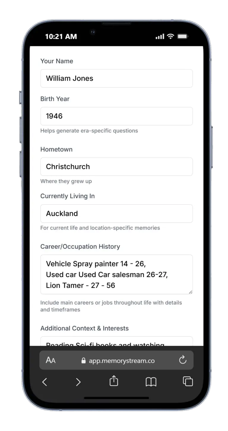 We provide you with the questions to guide you though your life story.