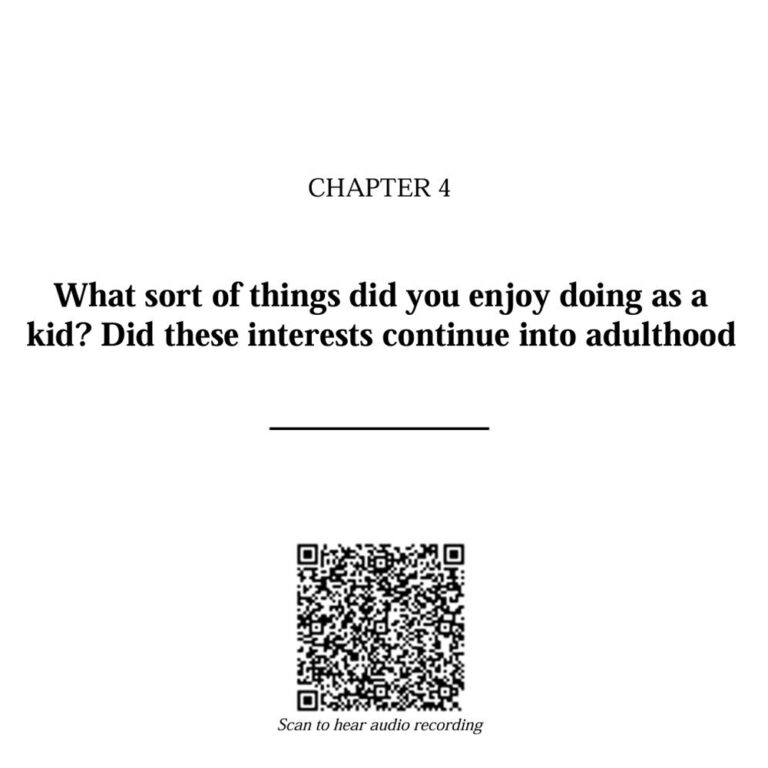 We ask creative, personalised, down-to-earth questions about your life: your childhood, family, work, big moments, little memories.